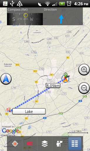Bitte beachten Sie: Mit dieser App ist keine direkte "Turn-by-Turn"-Navigation möglich. Sie haben aber die Möglichkeit, bei angewähltem Wegpunkt, auf die Google Navigation umzuschalten.
